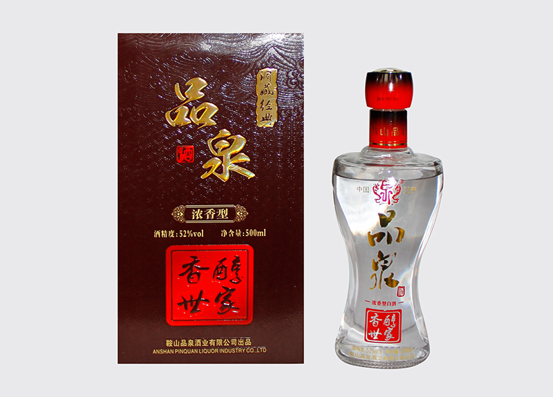 品泉為濃香型白酒,以小麥、大米、玉米、高粱、糯米5種糧食發酵釀制而成, 承襲百年純熟釀酒工藝,原始洞藏,香氣濃郁,滋味醇厚,入口甜、落口綿、尾凈余長恰到好處。